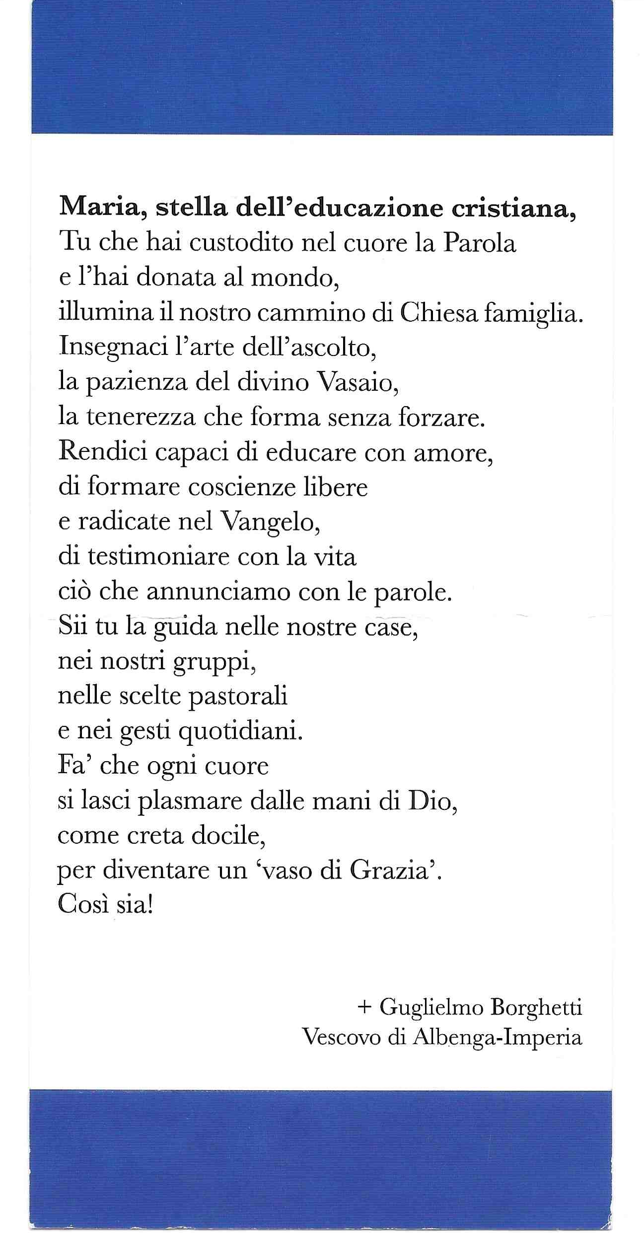 Preghiera a Maria: Stella dell'educazione cristiana »