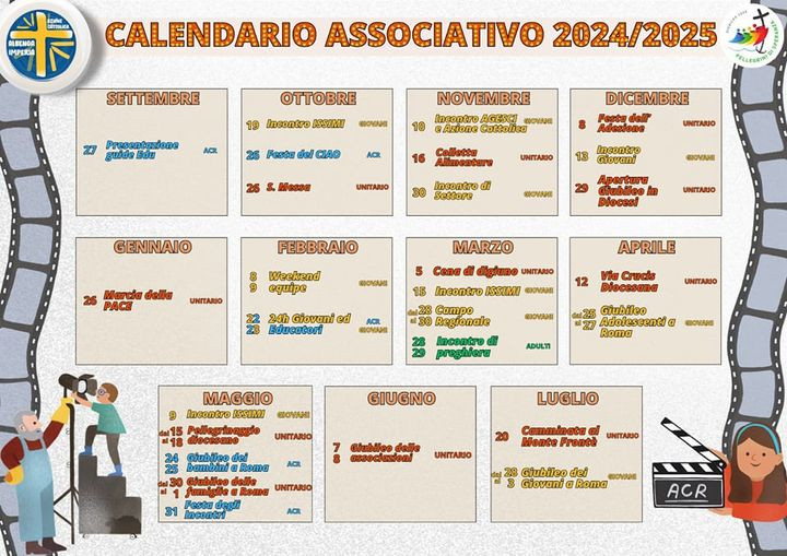 Calendario delle iniziative e appuntamenti da vivere insieme per questo nuovo anno associativo che sarà ricco di momenti per tutti e che ci vedrà camminare in questo anno del Giubileo!