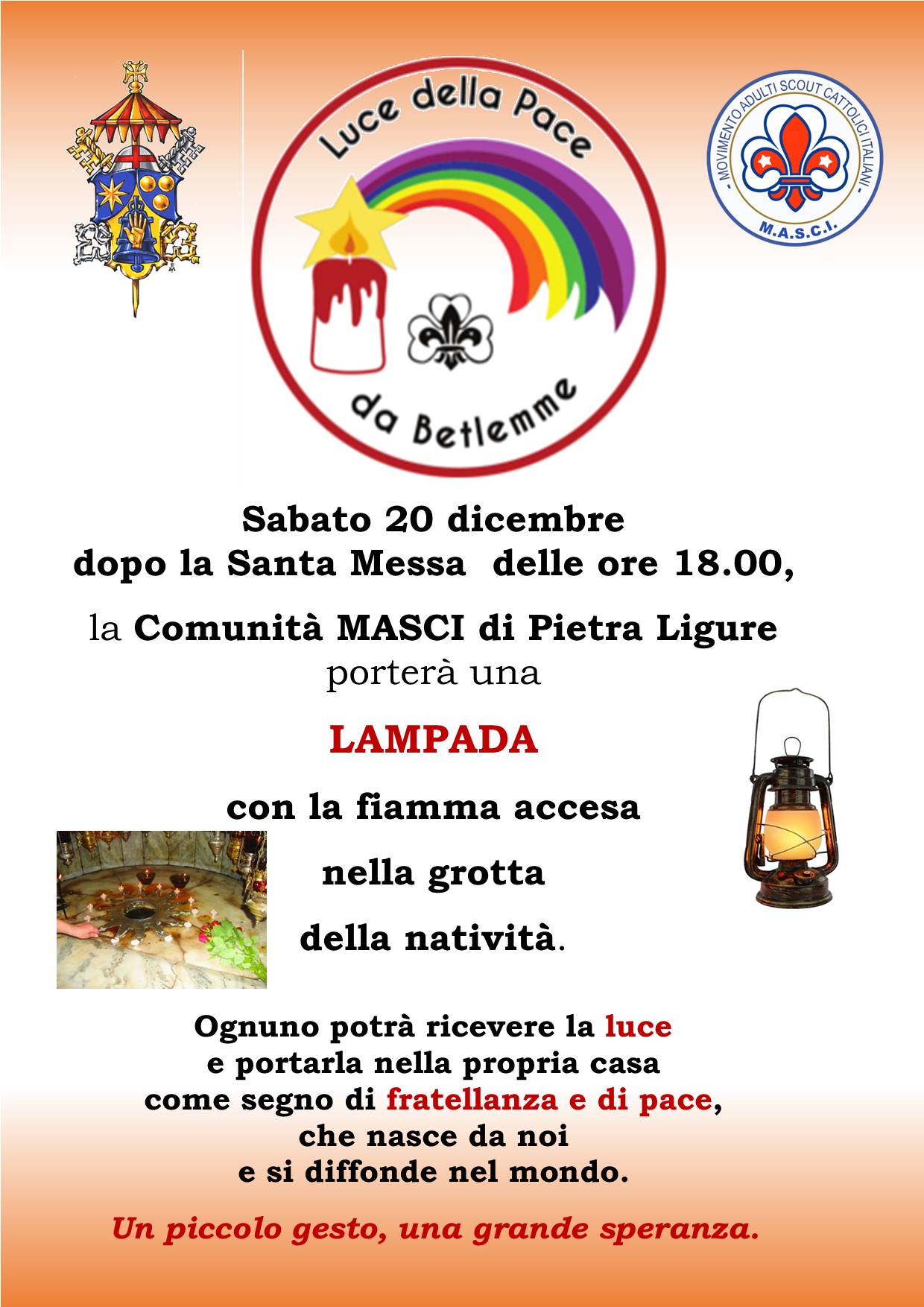 La comunità M.A.S.C.I. di Pietra Ligure augurando a tutti buon Natale e buon Anno coglie l’occasione per ringraziare le molte persone che generosamente DONANO permettendole di realizzare varie iniziative tramite il "MERCATINO MENSILE" e il "GRUPPO VALMAREMOLA".